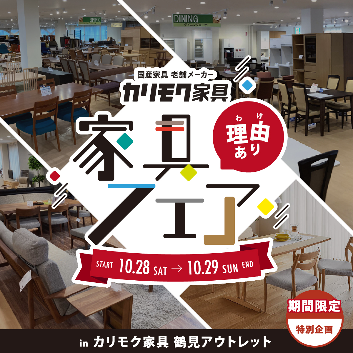 神奈川県横浜市鶴見にある「カリモク鶴見アウトレット」にて、『理由あり家具フェア』を期間限定で開催致します。